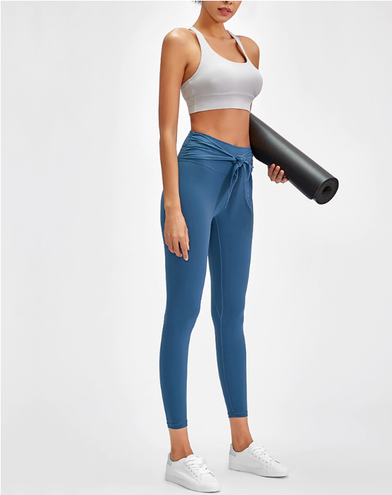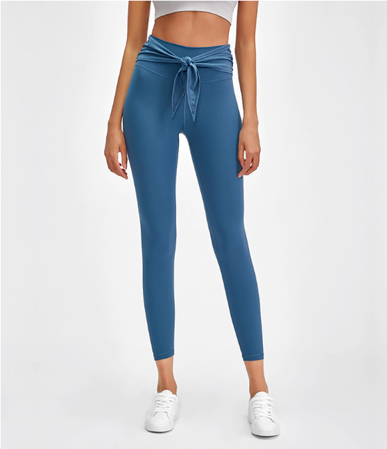 Ginhawa Athleisure Sandy Tie-Waist Semi-Cropped Yoga Pants in Blue