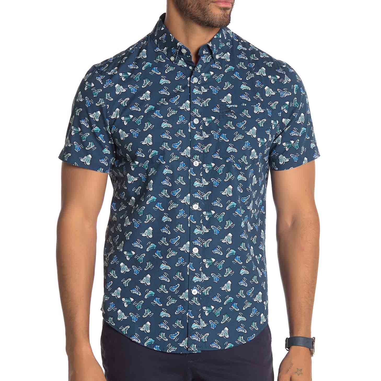 Printed with snappy sneakers, this Original Penguin short sleeve button-up shirt will ensure that everyone can see your unique sense of style.